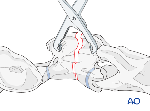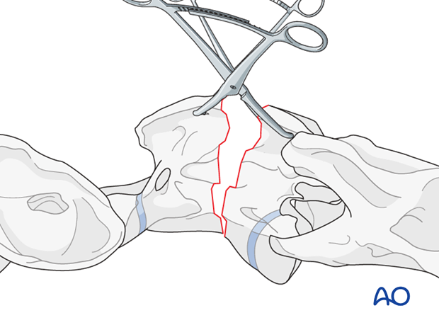 Pearl: Large bone-holding forceps and a large bone clamp can facilitate the reduction of the fracture.