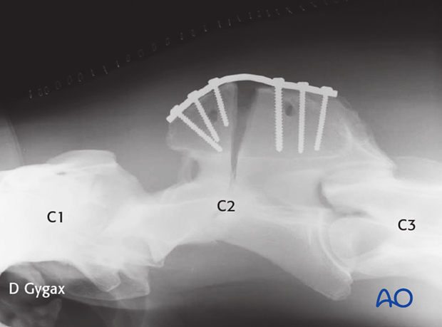 Fractures of the axial body are stabilized with plates. The goal of surgery is to provide decompression at the fracture site by realigning the vertebrae and providing stability with some form of fixation.